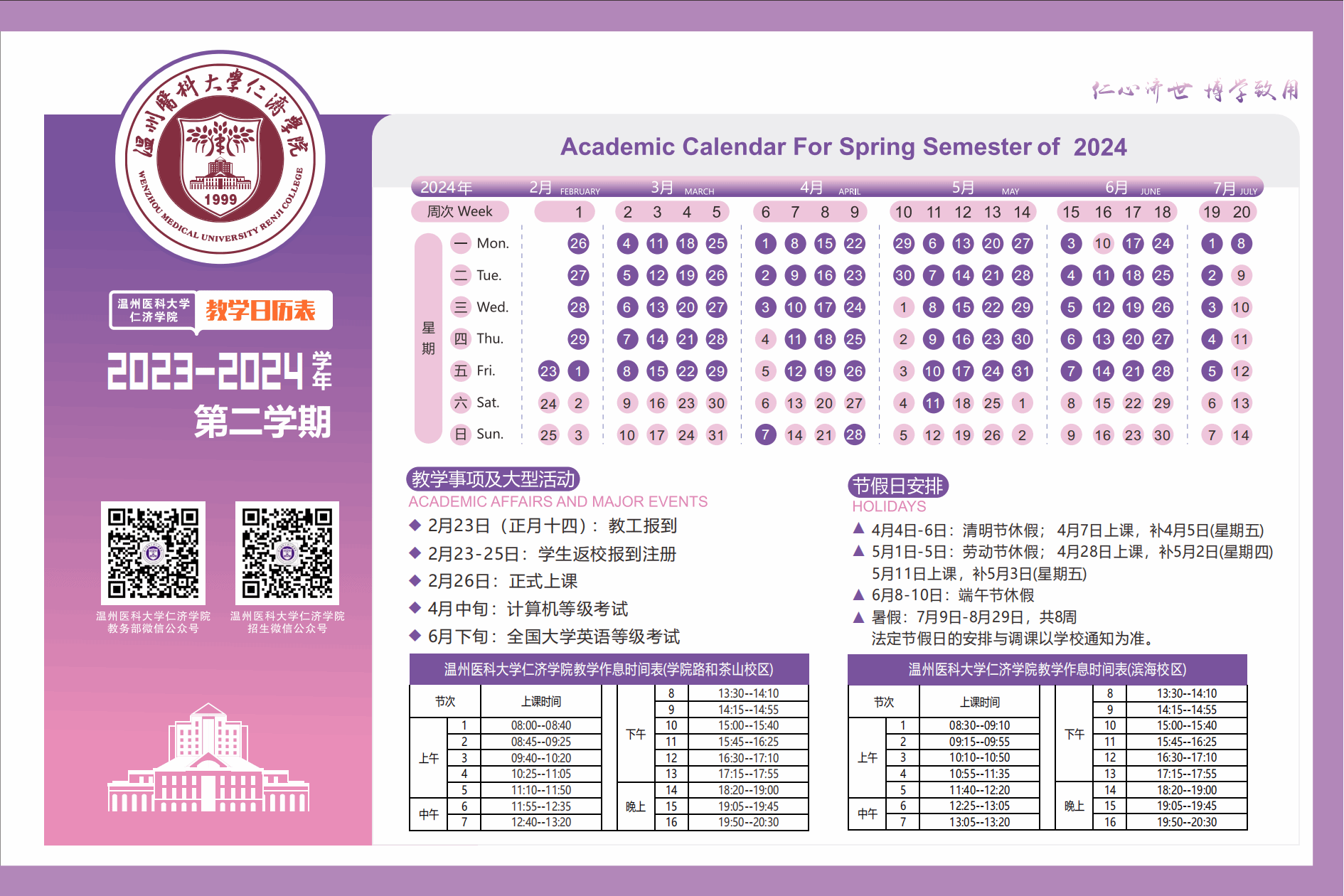 黄瓜视频 2023-2024学年第一学期和第二学期教学日历表