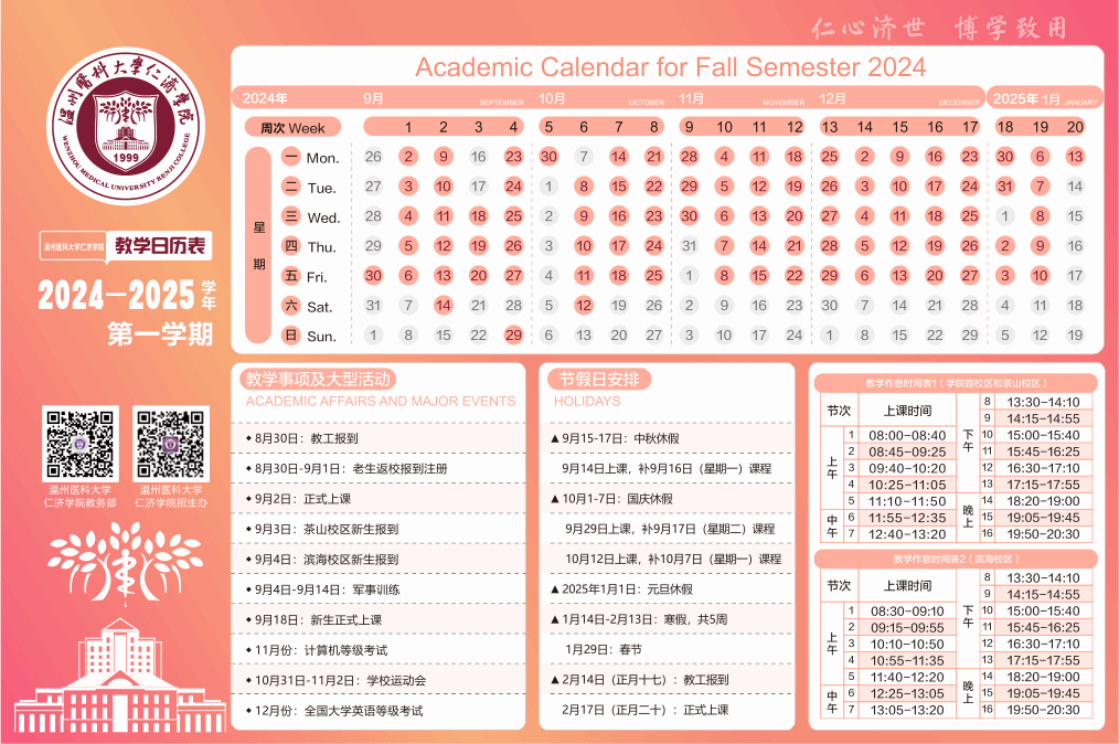 黄瓜视频 2024-2025学年第一学期和第二学期教学日历表