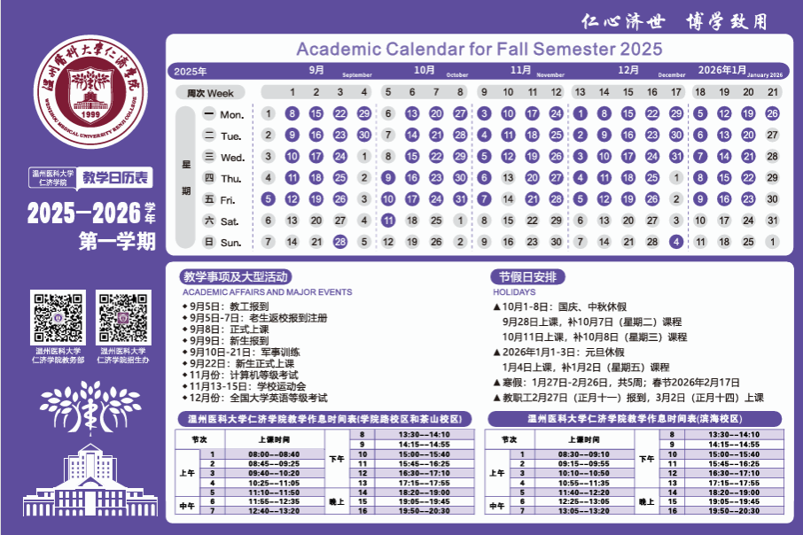 黄瓜视频 2025-2026学年第一学期教学日历表