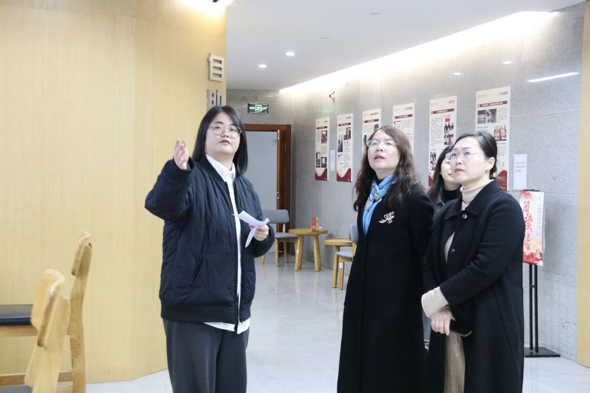 调研期间,章红波一行实地走访观摩了学院党建文化长廊、党群服务中心与心理咨询中心等。