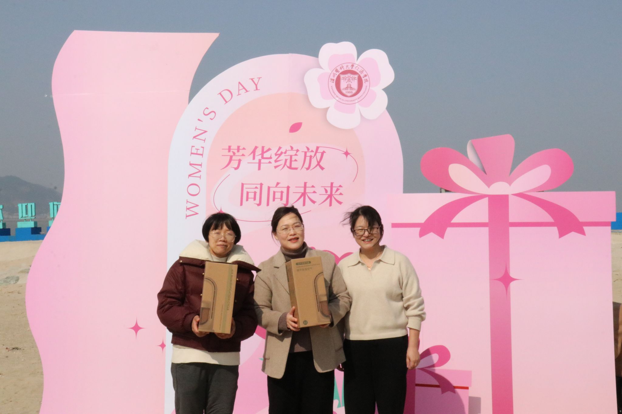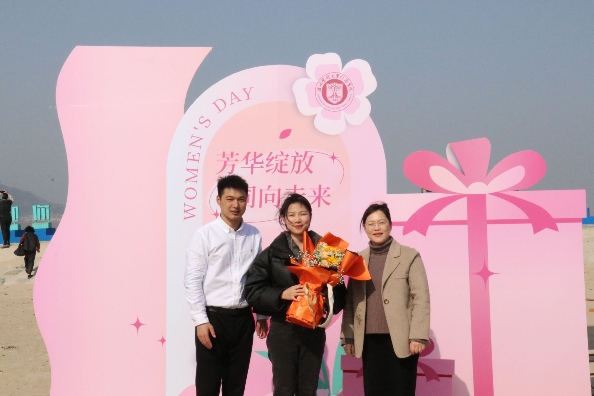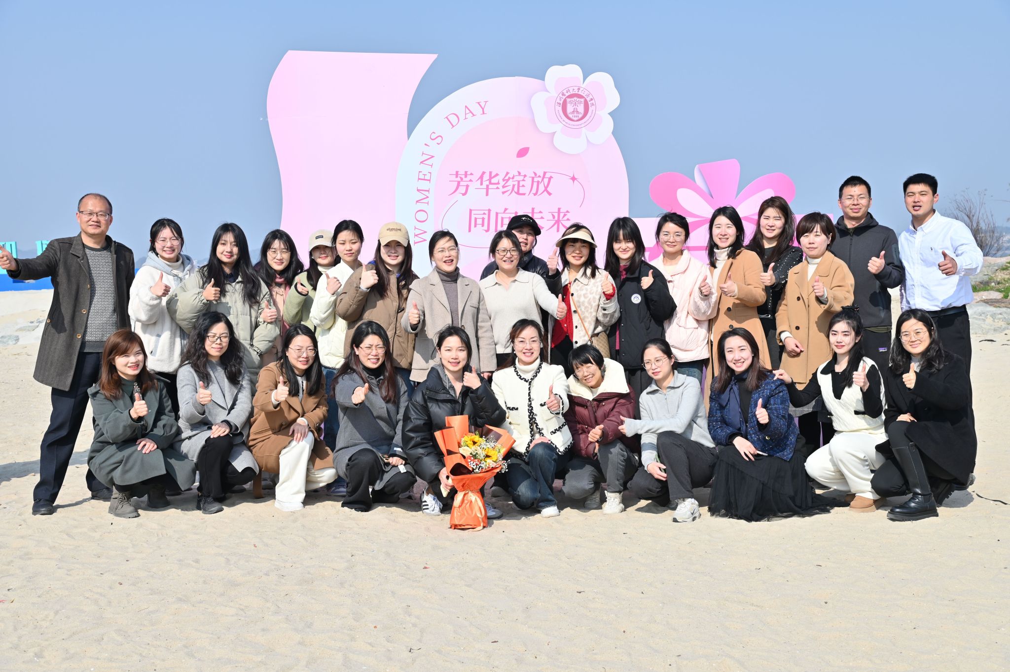 3月8日下午,暖阳高照,海风习习,在第114个国际妇女节来临之际,黄瓜视频 工会和妇联联合为学院女教职工组织开展了“芳华悦己· 向美而生”主题系列活动。本次活动特定于洞头岛同心公园开展,碧海蓝天,金沙逐浪,黄瓜视频 女教职工围坐一圈,天幕下传来阵阵欢声笑语。学院党委书记彭红雷,纪委书记林体排,党委副书记姜旭英、张立康以及学院40余位女教职工参加活动。