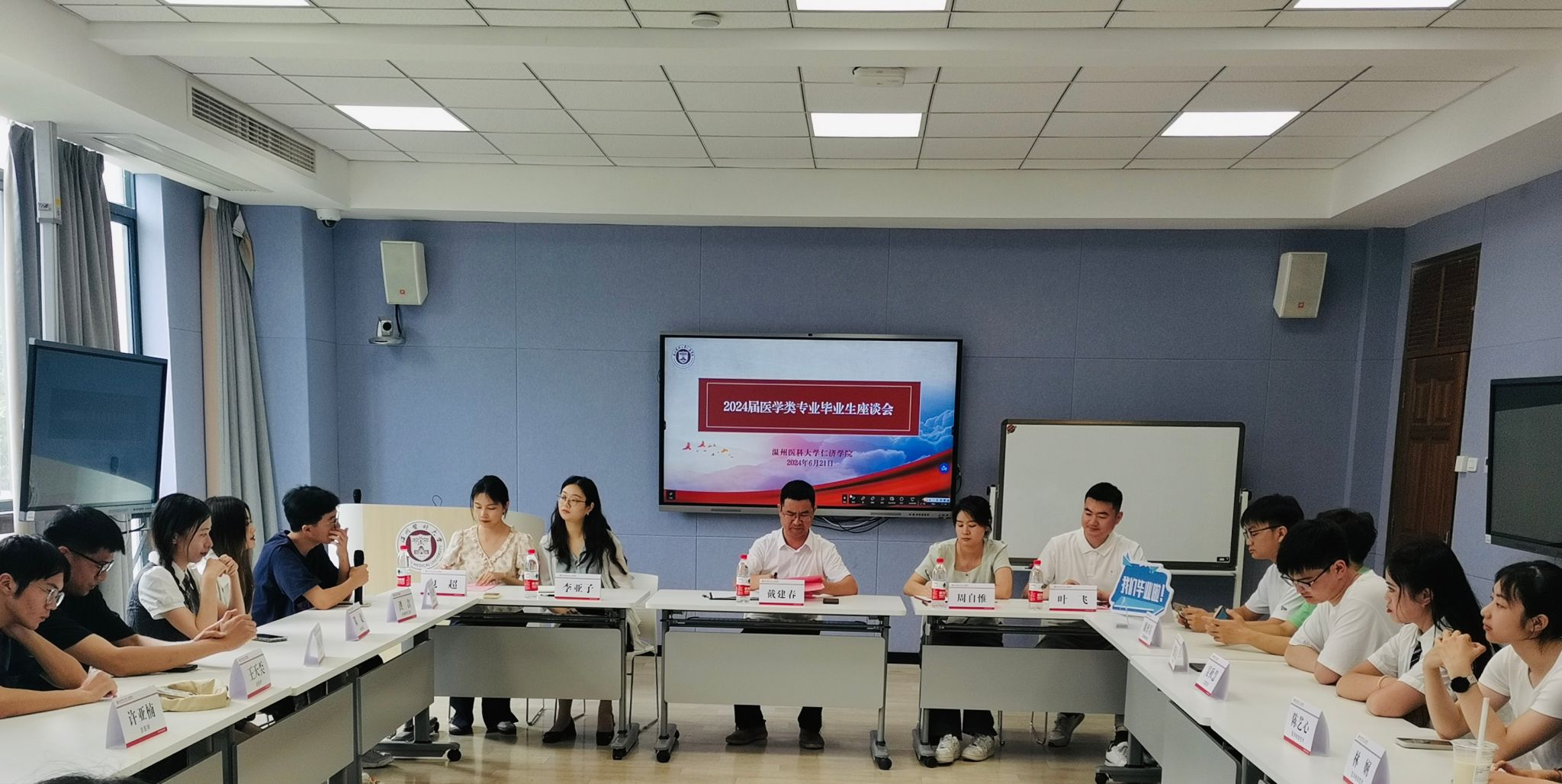 6月21日下午,我院在茶山校区召开医学专业毕业生座谈会。学院副院长戴建春携相关职能部门负责人与22名医学专业毕业生代表齐聚一堂,畅谈学习成长感悟,共话学院发展愿景。