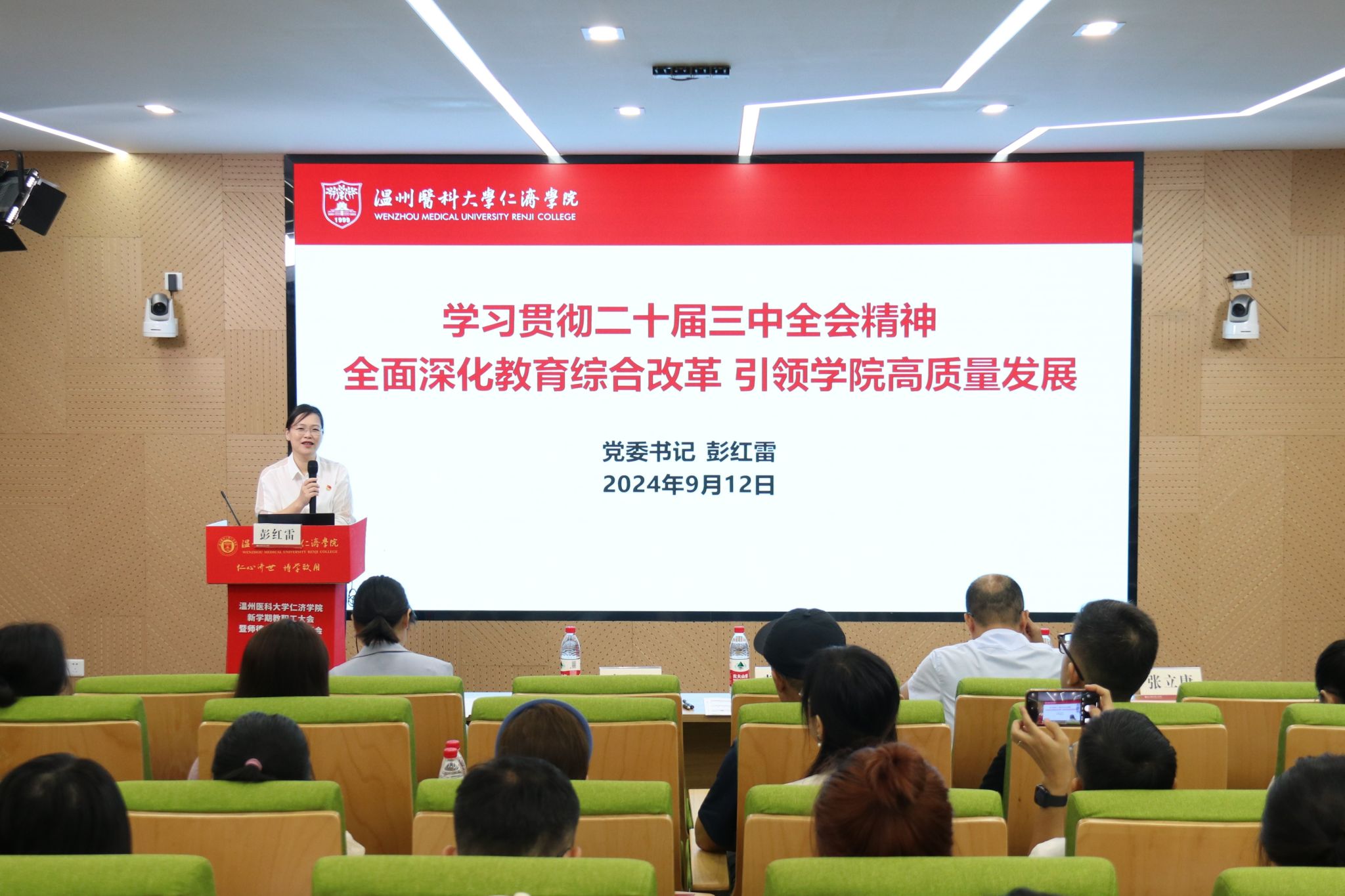 彭红雷指出,党的二十届三中全会是在以中国式现代化全面推进强国建设、民族复兴伟业的关键时期召开的一次重要会议。会议审议通过的《中共中央关于进一步全面深化改革、推进中国式现代化的决定》,擘画了一系列标志性、引领性、突破性重大改革举措,既是党的十八届三中全会以来全面深化改革的实践续篇,也是新征程推进中国式现代化的时代新篇。彭红雷强调,要深刻把握党的二十届三中全会关于深化教育综合改革的重大意义和历史使命,深入学习领会习近平总书记关于党的建设的重要思想,进一步把思想和行动统一到党中央的决策部署上来,以习近平新时代中国特色社会主义思想为指导,全面深化综合改革,统筹推动学院高质量发展。