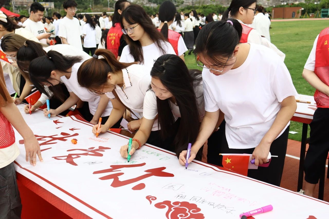 最鲜活的大思政课是什么样子的?一次次仰望凝视,一遍遍倾情讲述,一段段感人故事,让“青年”和“爱国”这两个词更加具体、更加真切。“热爱祖国,忠于人民!不负时代,不负韶华!请党放心,强国有我!”现场师生紧握右拳,一句句铿锵有力的青春誓言响彻云霄。