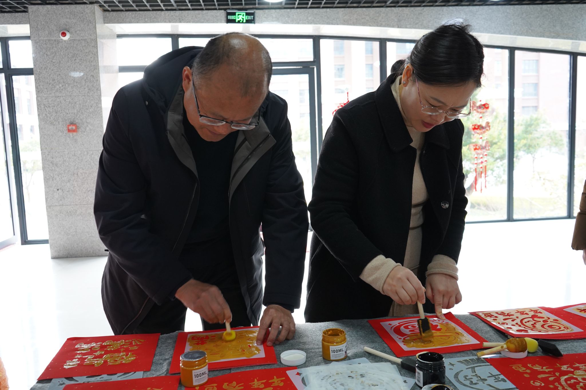 走访结束后,院领导还与教职工共同参与“拓印福字迎新春”活动,一方方红纸铺陈案头,教职工们手持拓印工具,蘸取金粉,在院领导的示范下拓出饱满遒劲的“福”字,寓意“福满人间,万象更新”。