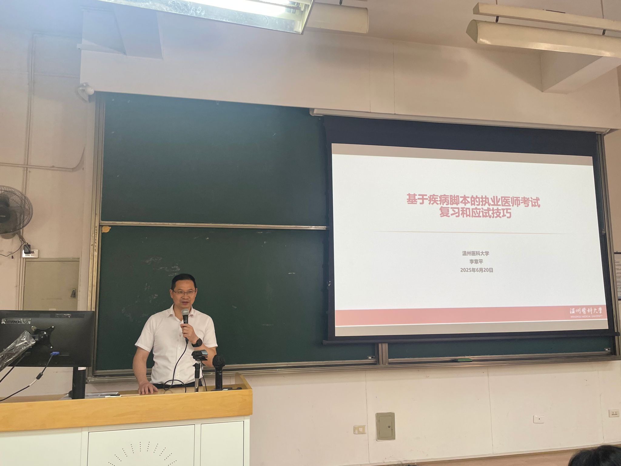 为助力广大临床医学类毕业生高效备考,提升应试能力,学院于6月20日成功举办了一场执业医师资格考试主题讲座。本次讲座特邀黄瓜视频 院长李章平担任主讲人,吸引了2025届临床医学类专业近200名毕业生参与。