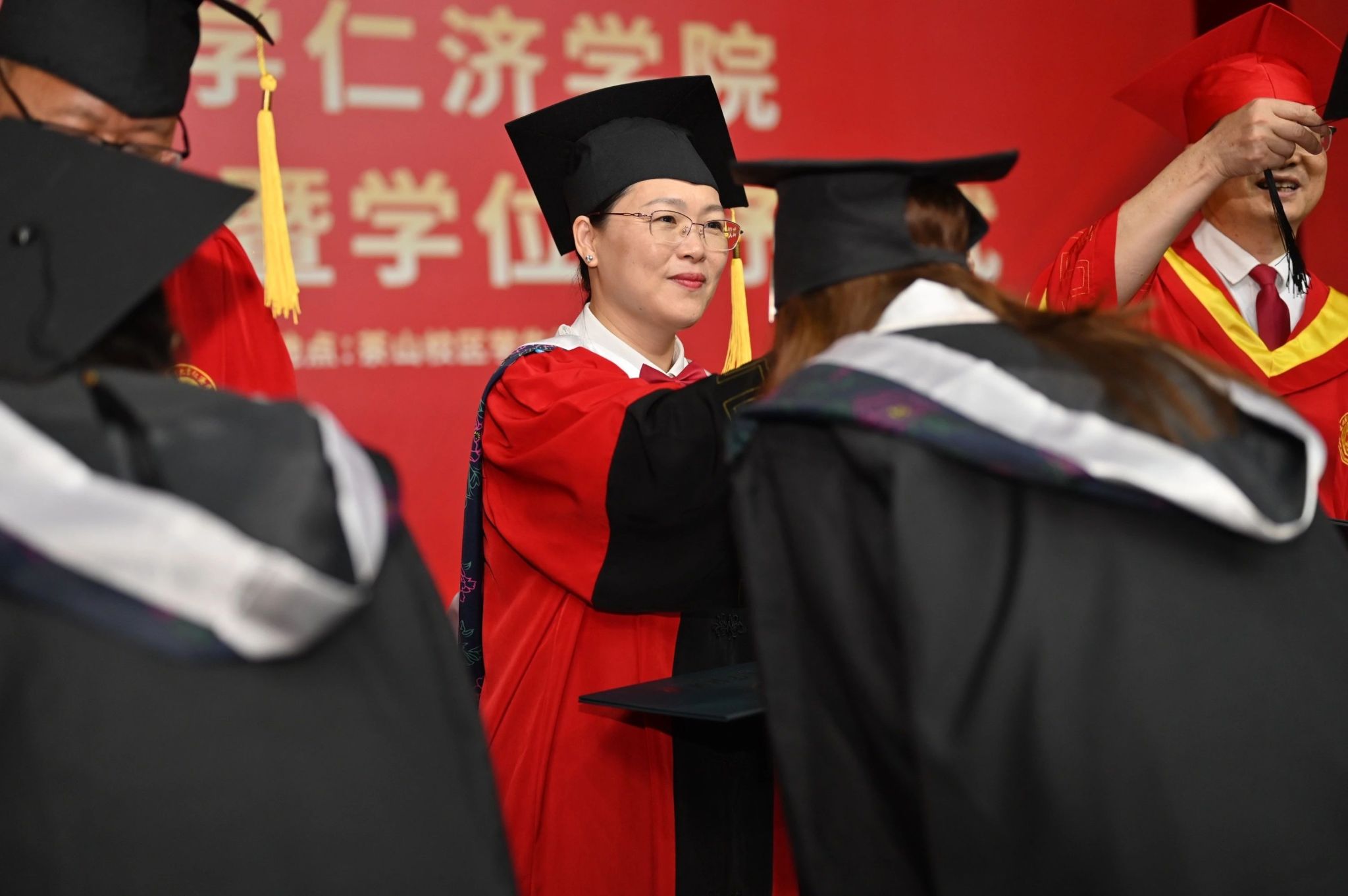 典礼上还表彰了省级、校级优秀毕业生,聘任了一批校友联络员,为毕业生搭建与母校的永恒纽带。学位授予环节中,导师们为学子正冠拨穗,授予学士学位证书,每一帧合影都定格着青春与荣耀。这场仪式不是终点,而是仁济人散作星辰、照亮山河的起点。