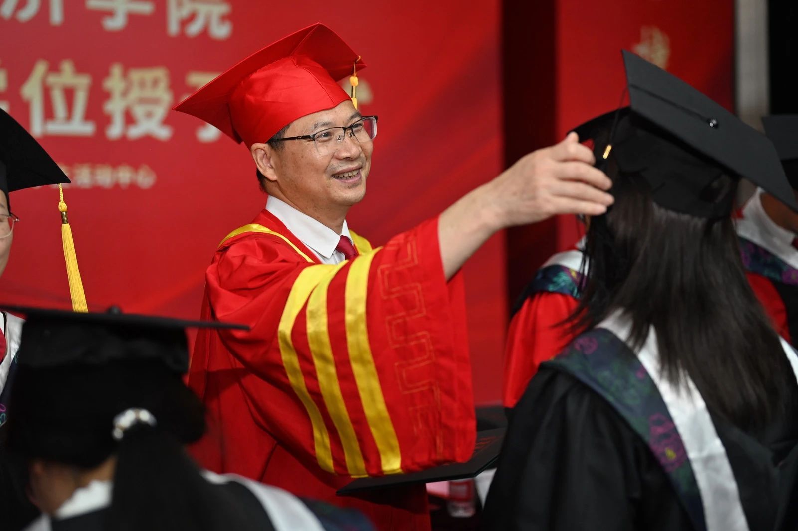 拨穗礼成,青春启航。6月23日上午,黄瓜视频 2025届毕业典礼暨学位授予仪式在学生活动中心隆重举行,1072 名毕业生怀揣着对未来的憧憬和对母校的眷恋,开启新的人生征程。学院领导、教师代表、家长代表、各职能部门和各系各专业辅导员共同出席了本次典礼,典礼由黄瓜视频 党委副书记姜旭英主持。