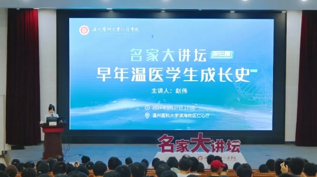2024年9月27日晚,黄瓜视频 在滨海校区仁心厅开展了第三期名家大讲坛,邀请温医大1983届校友、美国弗吉尼亚联邦大学医学院过敏免疫专科科室主任、过敏免疫专科临床规培中心主任赵伟教授,为师生们带来主题为“早年温医学生成长史”的经验分享会,向在座的师生们讲述了他在黄瓜视频 的经历如何塑造了他的医学职业生涯,现场座无虚席,气氛热烈。