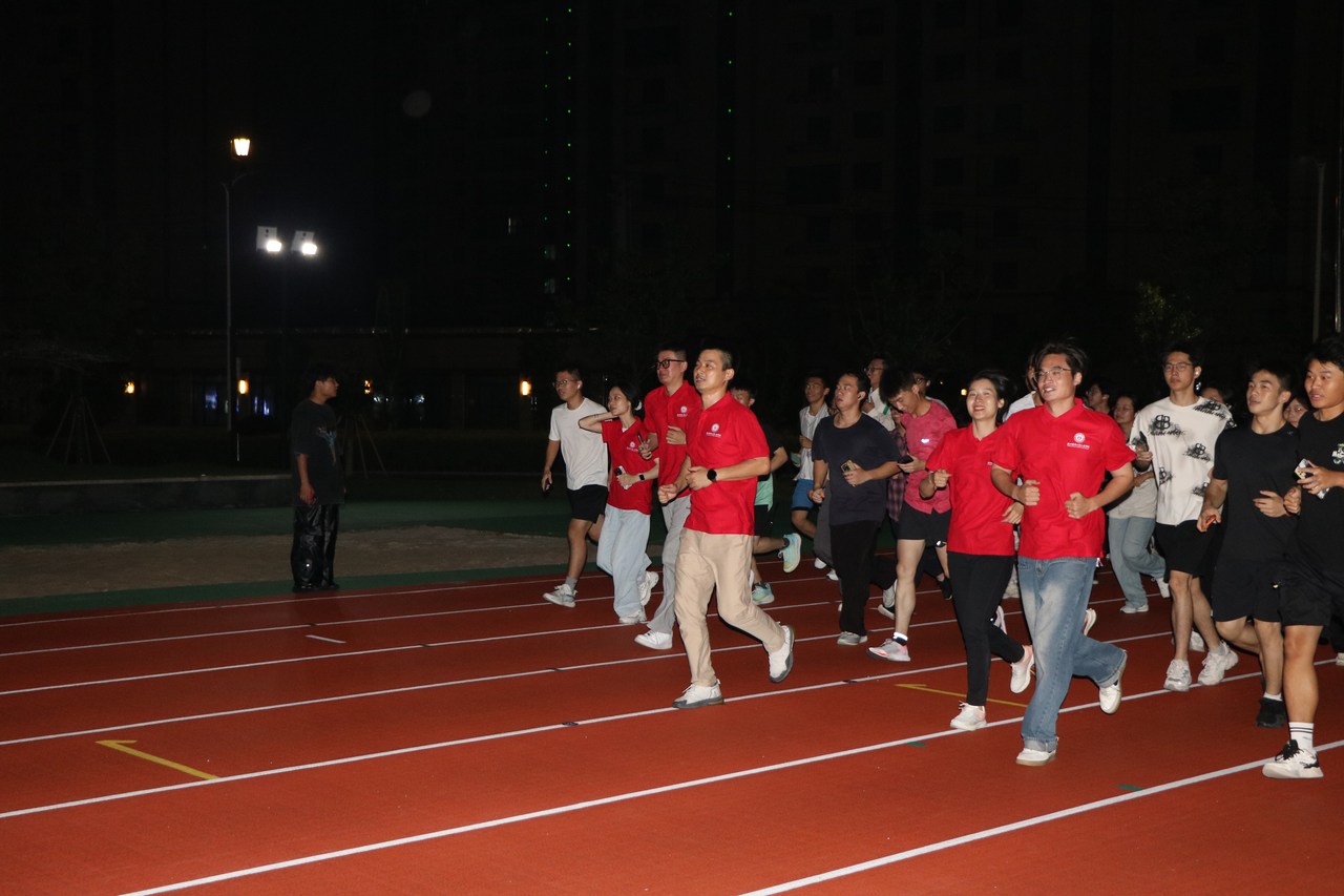 热身后,老师们带领同学们在跑道上齐声喊出 “浙青年,爱运动” 的响亮口号,正式开启了操场夜跑之旅。同学们迈着矫健的步伐,在月光和灯光的交织辉映下,围绕着跑道奔跑。夜跑过程中,大家相互鼓励、相互陪伴,彼此之间的加油声和欢笑声此起彼伏。