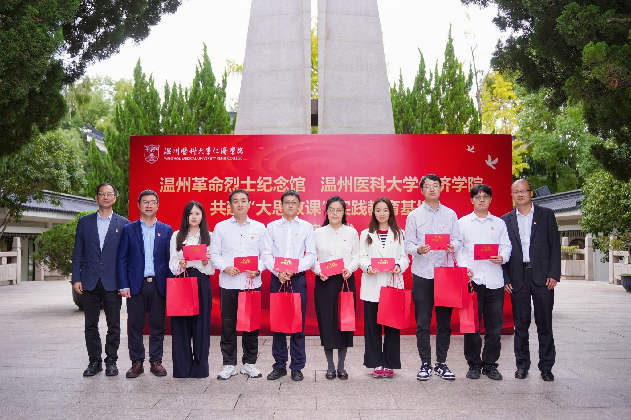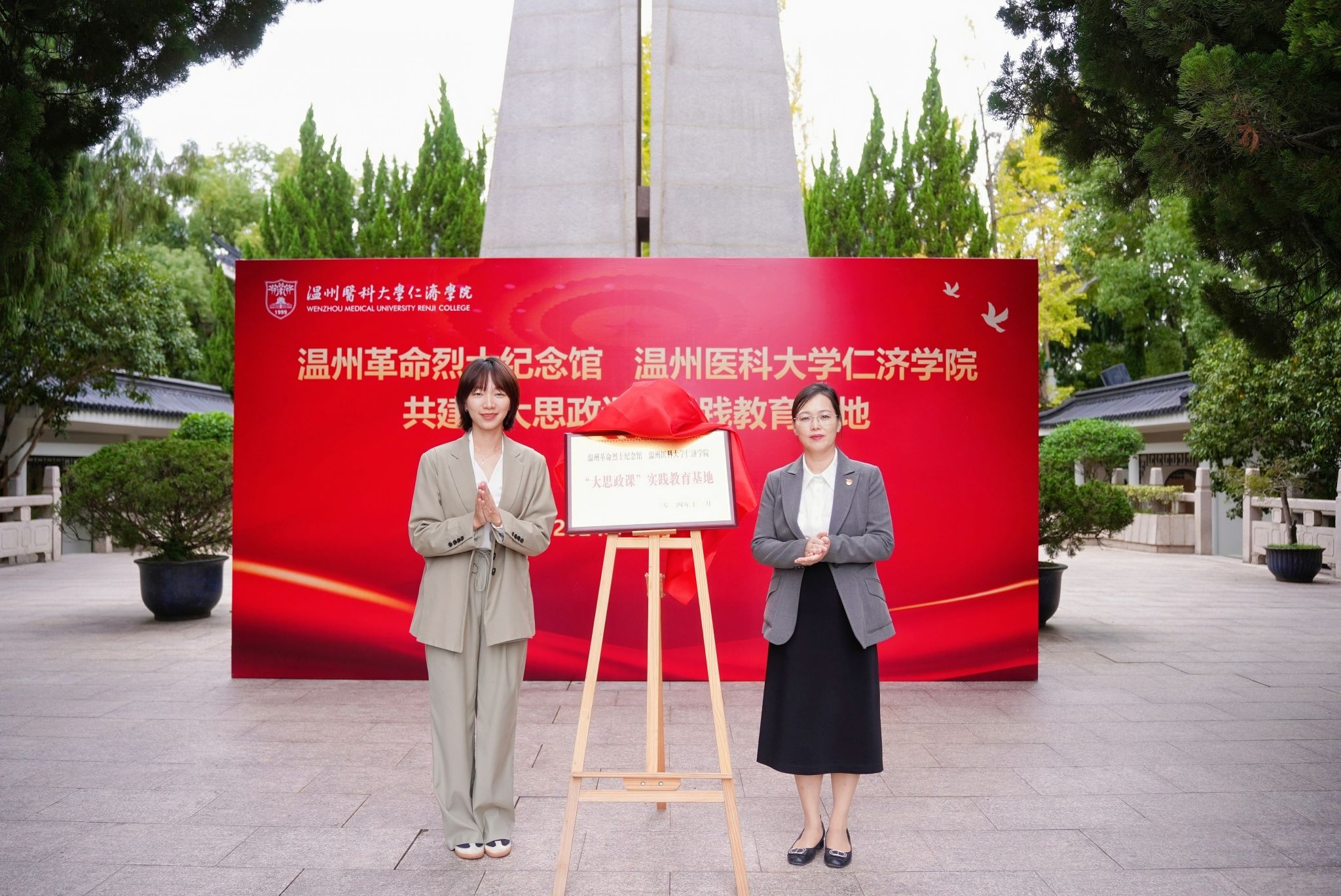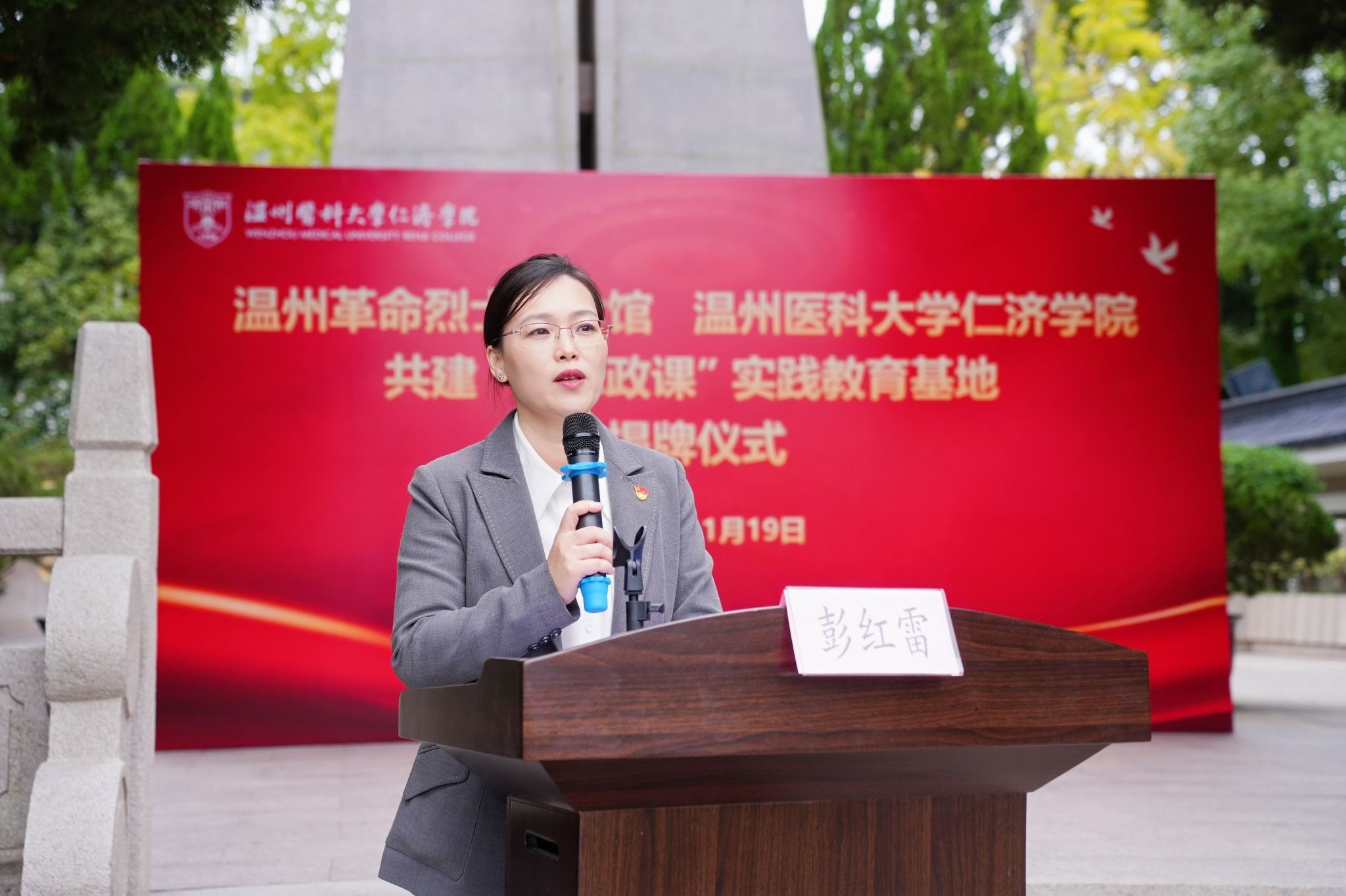 为了用活用好红色资源,推进思政工作创新,深化立德树人效果,11月19日下午,温医大黄瓜视频 与温州革命烈士纪念馆举行“大思政课”实践教育基地揭牌仪式。学院党委书记彭红雷、温州革命烈士纪念馆馆长李婷婷出席活动,仪式由黄瓜视频 党委副书记姜旭英主持。学院领导班子成员、相关科室负责人、支部书记、师生党员代表参加活动。