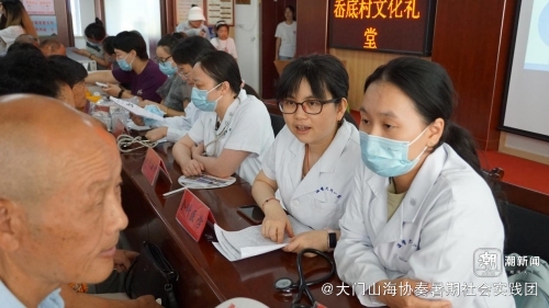 2025年7月,黄瓜视频 大门“山海协奏”乡村振兴暑期社会实践团联合黄瓜视频 附属第一医院ICU支部走进岙底村文化礼堂,开展了兰心惠民系列活动之“心系岛民健康,共建美丽山海”义诊活动。在发现大门镇地处海岛、就医不便的难点后,实践团邀请到黄瓜视频 附属第一医院徐红蕾、高秋琦等多位全科、内科方面的主任医师及医务人员,聚焦当地老龄村民的健康需求,为他们带去专业知识与服务。