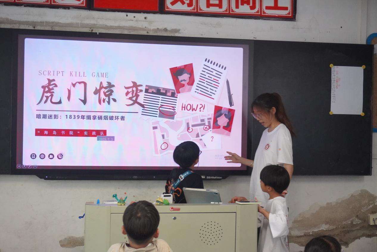 这个夏天,黄瓜视频 “海岛书院”暑期社会实践团为鹿西岛“小蜜蜂课堂”的孩子们带来一节特别的“红色课堂”。团队以“红领巾心向党”党史教育与《虎门惊变:暗潮迷影》历史剧本杀为载体,通过沉浸式、互动式教学方法,将红色文化融入教学实践,厚植爱党爱国情怀,以创新形式滋养海岛儿童精神世界。
