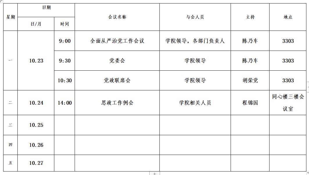 第六周会议安排