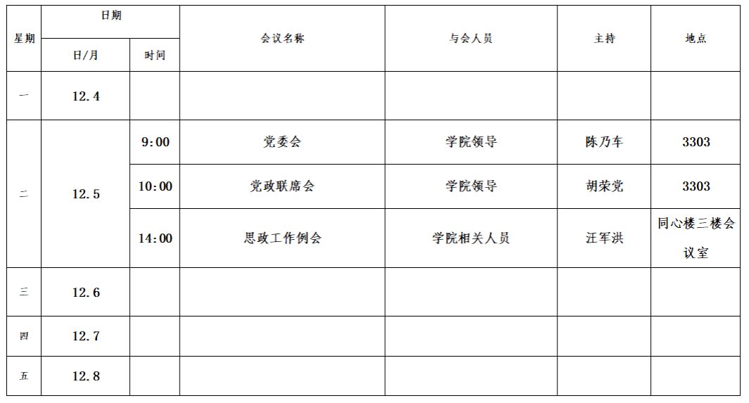 第十二周会议安排