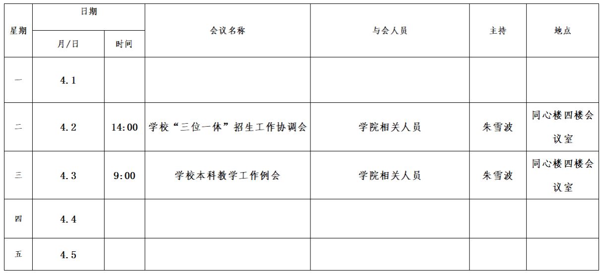 第五周会议安排