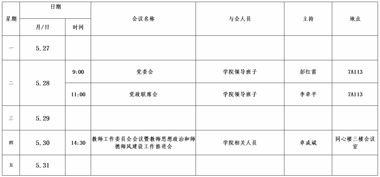 第十五周会议安排