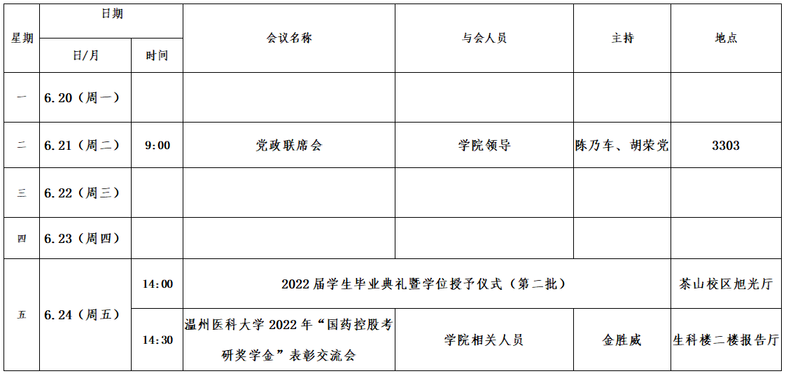 第十九周会议安排