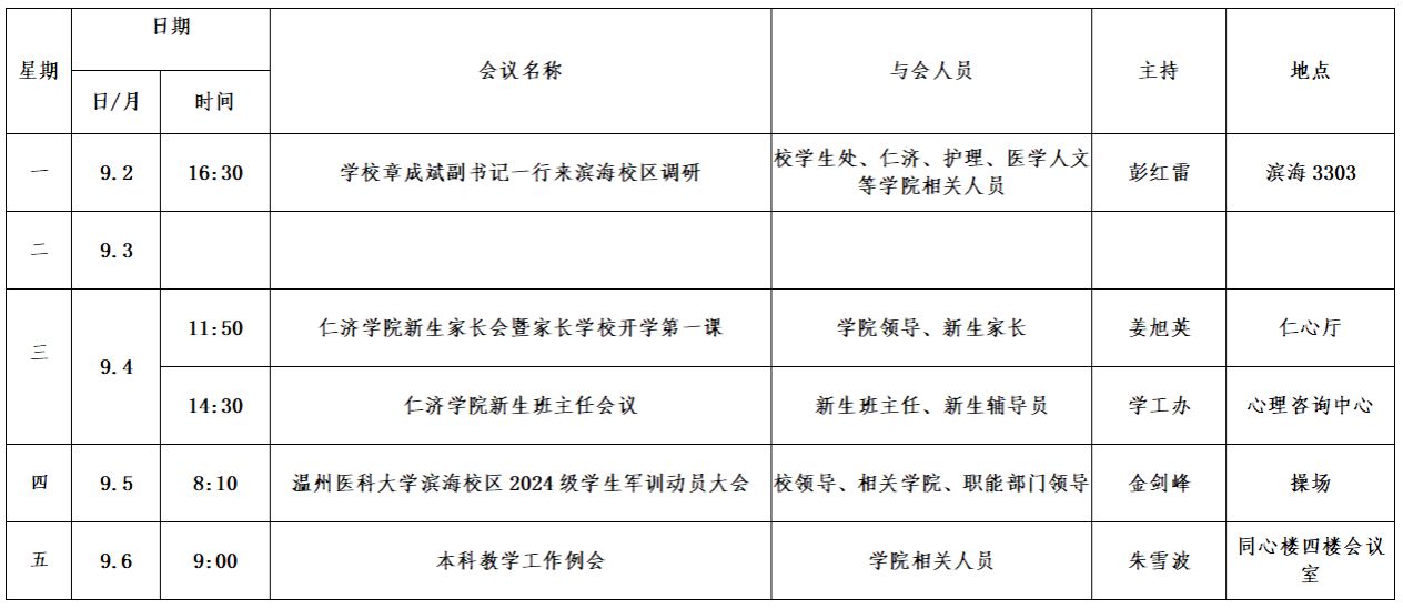 第一周会议安排