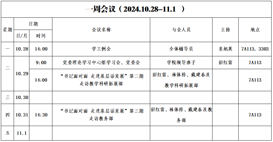 第十周会议安排