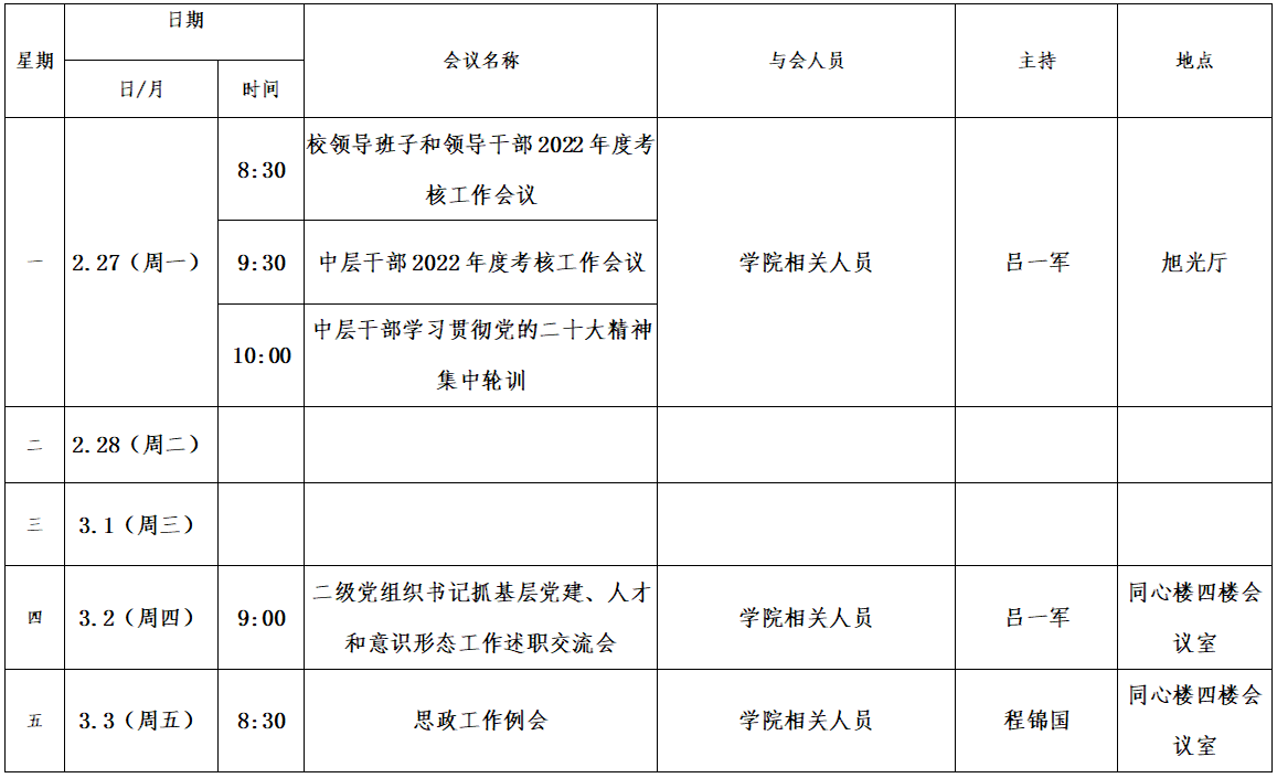 第三周会议安排