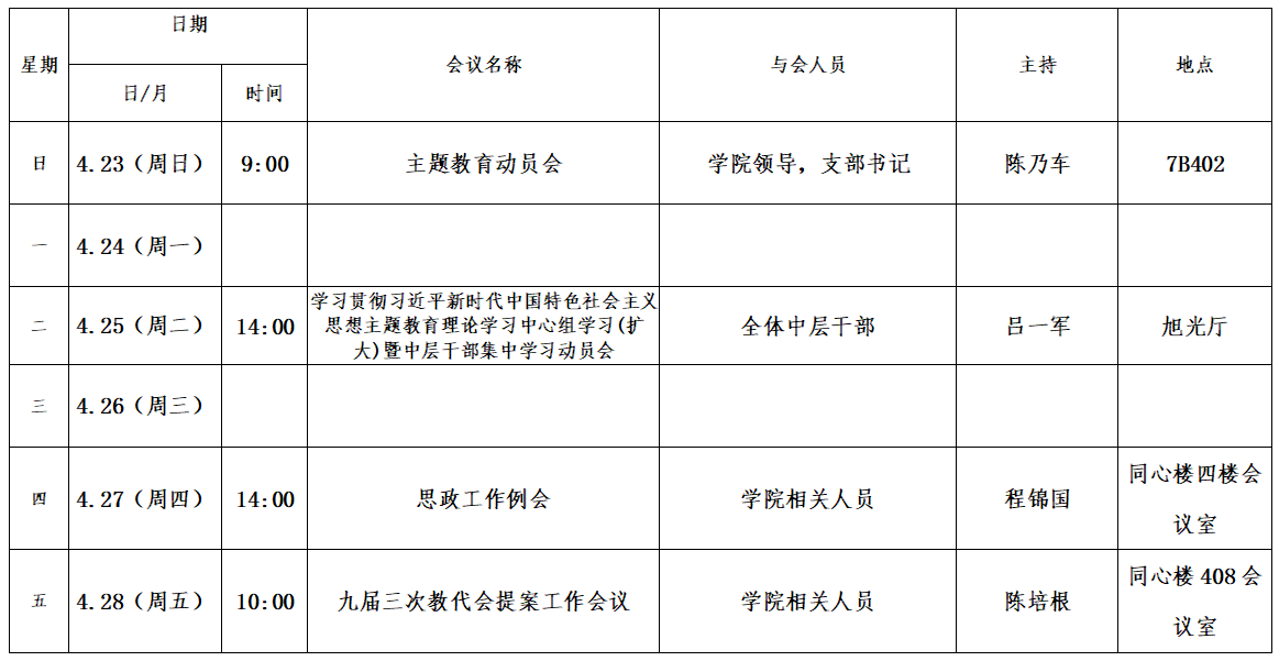 第十一周会议安排