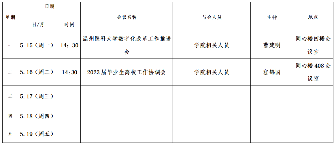 第十五周会议安排