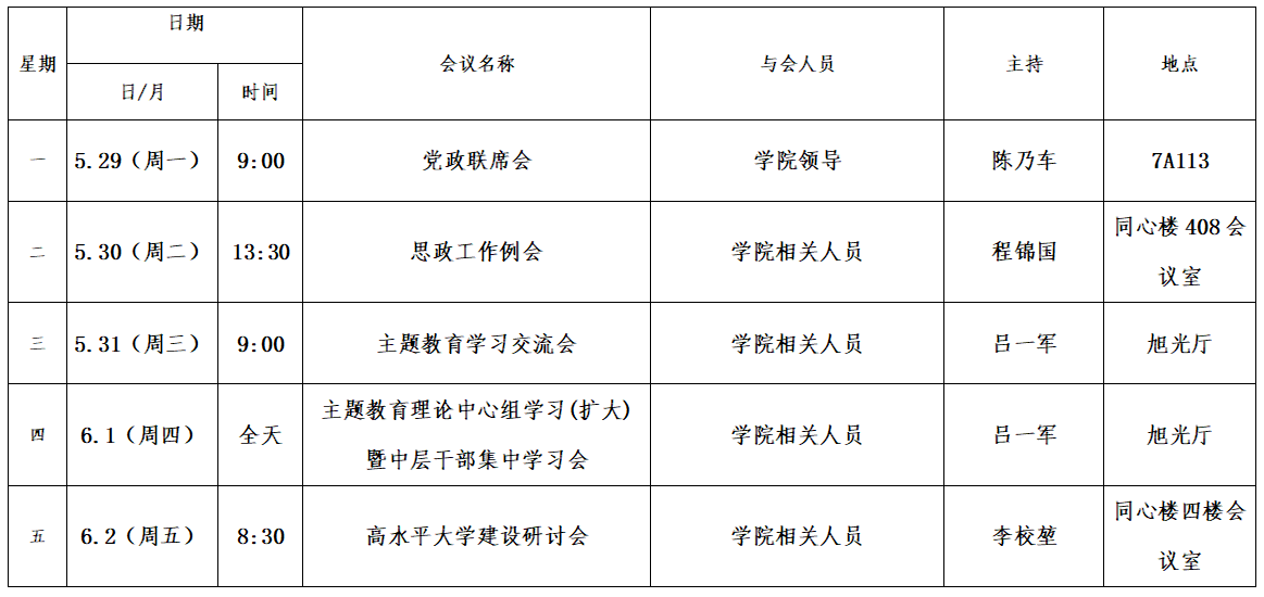 第十七周会议安排