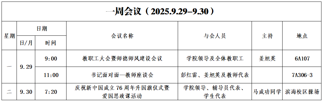 第四周会议安排