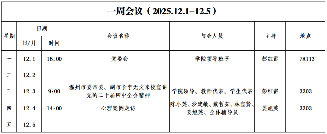 第十二周会议安排
