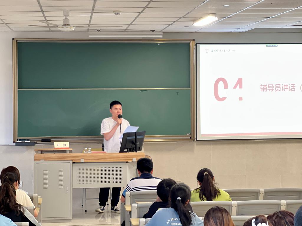 教学科研拓展部部长林瑾就本次实践的目的、方式与安排、考核和评选等方面内容进行了详细阐述,对实践具体内容的开展及工作要求进行说明。随后,学校保卫处叶凯老师强调了实践期间的健康管理、意识形态、人身安全和财产安全等方面的要求,嘱咐同学们做好自身的安全管理。辅导员代表叶飞老师作动员讲话,他提出本次专业实践不仅是学习任务,更是一次基层志愿服务,是与现实相结合的“大思政课”, 希望同学们通过此次实践“受教育、长才干、作贡献”,展现仁济学子的风采。最后,教学科研拓展部潘晨旻老师就组长及片区负责人的职责和暑期实践作业上交等具体事项进行说明。