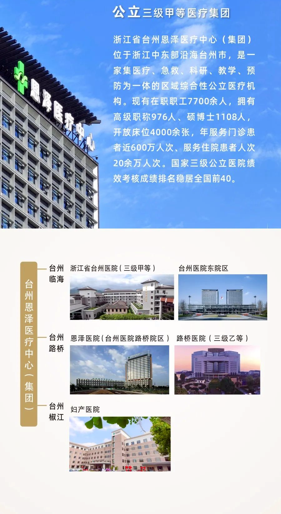 三甲,可入编丨台州恩泽医疗中心(集团)2024招聘公告