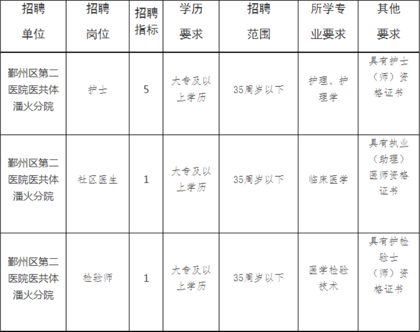 因工作需要,宁波市鄞州区第二医院医共体潘火分院拟面向社会招聘编外工作人员7名。具体要求如下:
