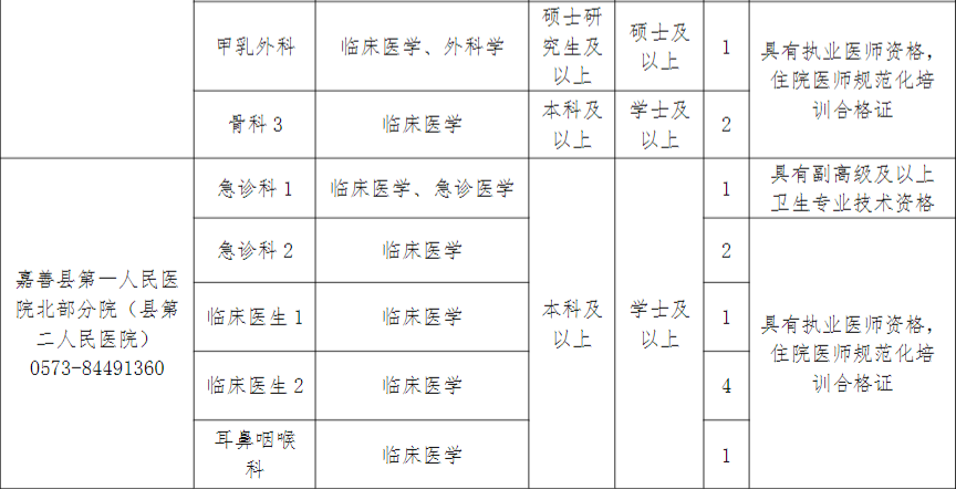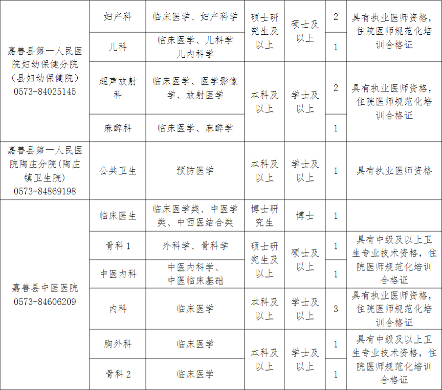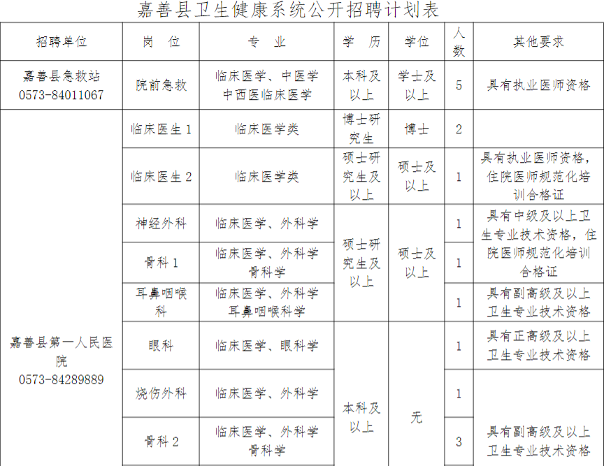 嘉善县卫生健康系统公开招聘事业单位卫生专业技术人员50名(详见岗位条件及计划表)。