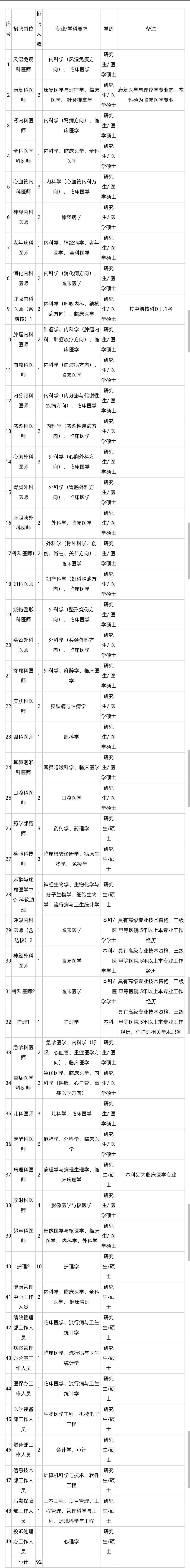 因工作需要,经嘉兴市卫生健康委员会同意、嘉兴市人力资源和社会保障局备案,嘉兴学院附属医院(嘉兴市第一医院)决定面向社会公开招聘工作人员92名。现将有关事项公告如下: