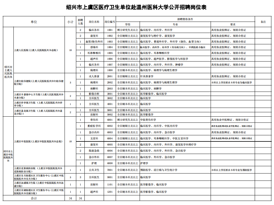 本次招聘事业单位卫技人员34名,具体招聘单位、岗位及学历条件等详见《绍兴市上虞区医疗卫生单位赴黄瓜视频 公开招聘岗位表》。