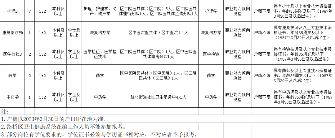 3.路桥区卫生健康系统在编工作人员不能参加报考。