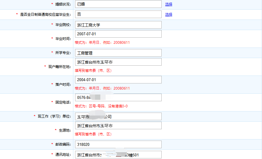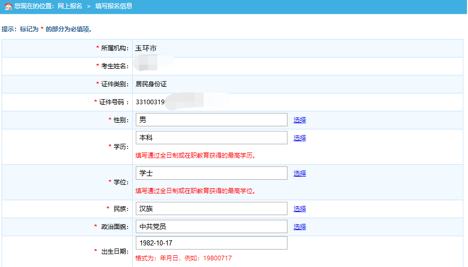 4.按照系统标红的提示信息如实、准确、完整地填写个人信息。