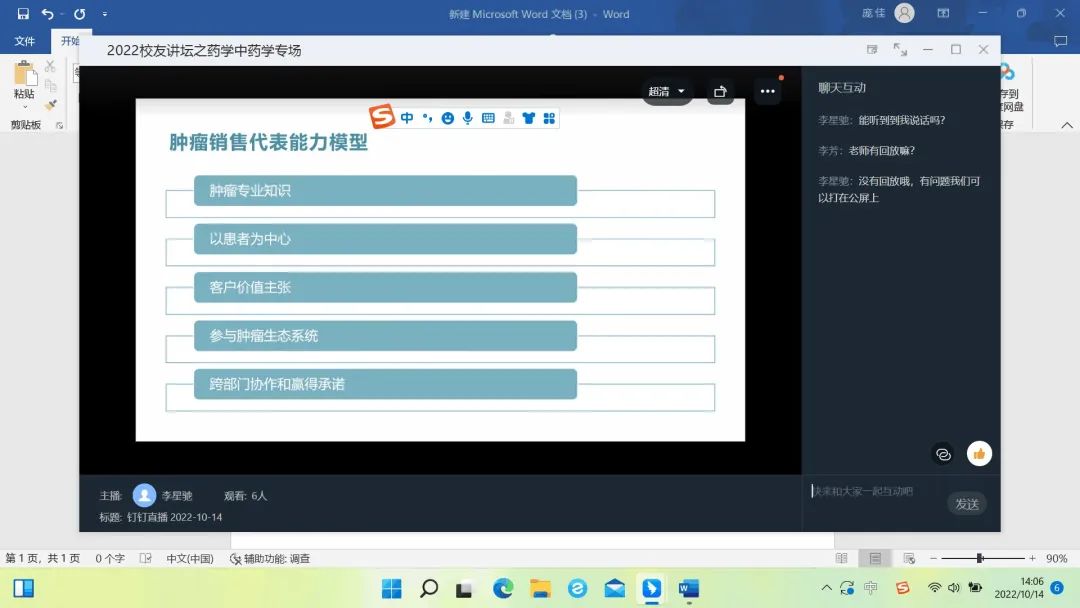 为充分发挥优秀校友在学院学风建设中的榜样引领作用,促进我院学生合理规划学习生活、提升学习热情、树立明确目标。10月14日,黄瓜视频 就业指导与服务中心联合优秀学姐学长通过钉钉会议线上平台举办了药学、中药学、法医学以及公共事业管理专业的优秀校友讲坛专场。