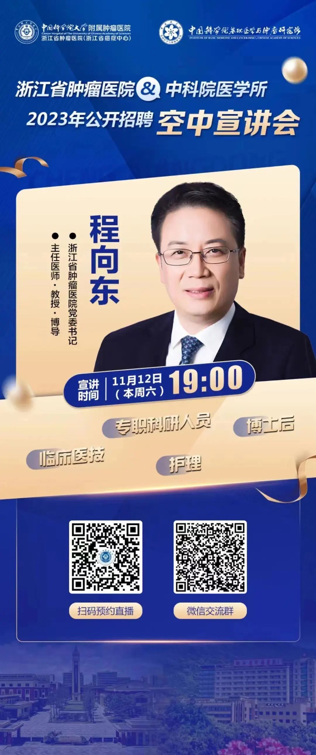 2023年浙江省肿瘤医院公开招聘空中宣讲会来了!快来收获本次公开招聘详细公告