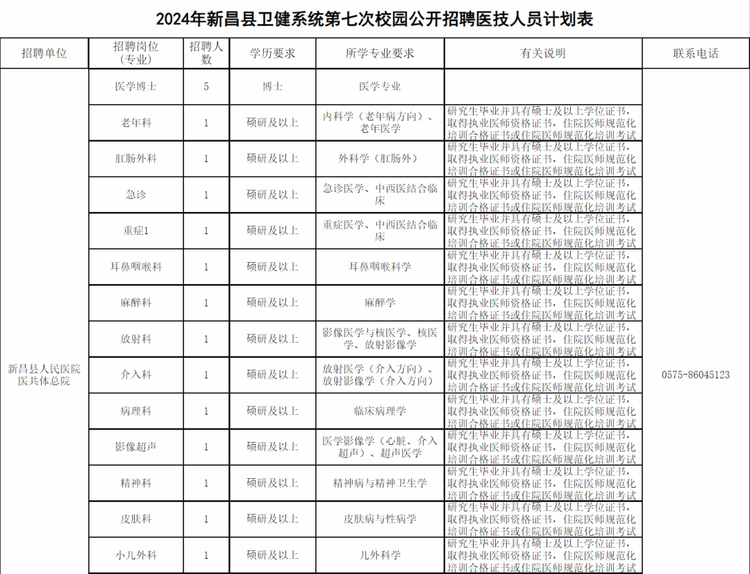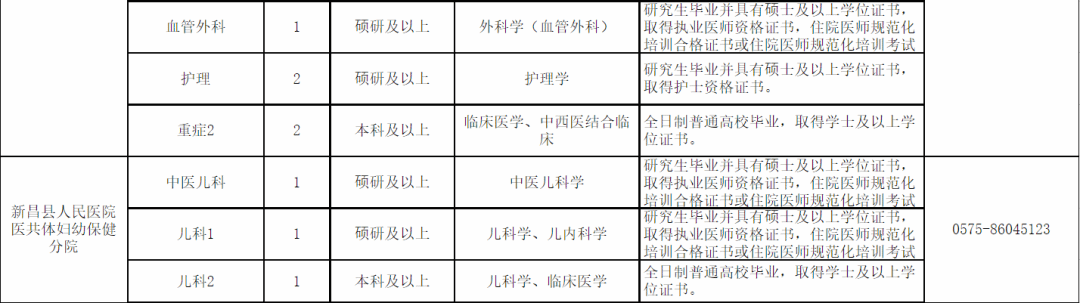咨询电话:新昌县卫健局人事科0575-86023375。