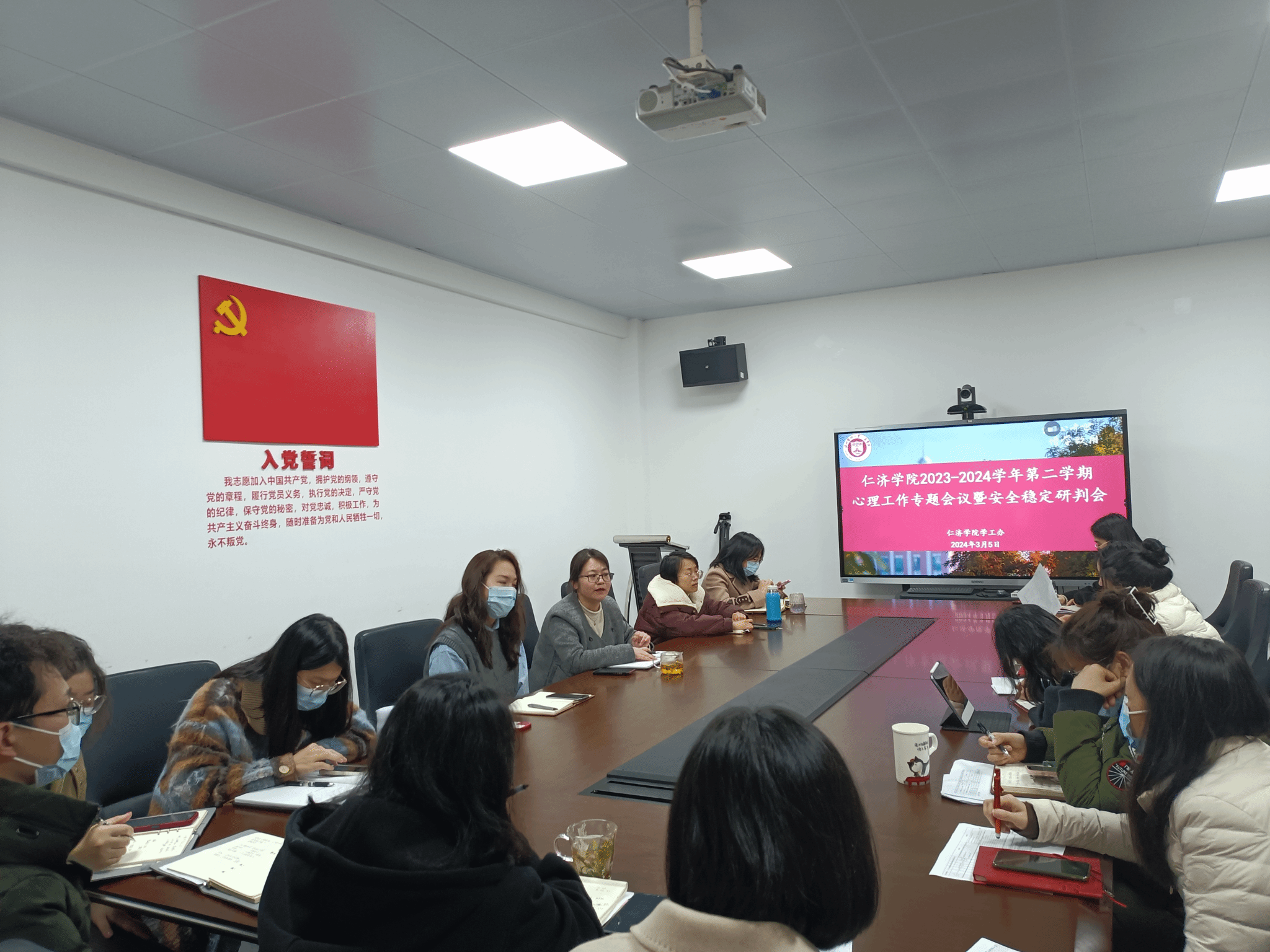 为扎实推进心理健康教育工作,确保新学期各项工作安全平稳有序进行,3月5日至3月7日,我院在茶山、滨海两个校区分别召开2023-2024学年第二学期心理工作专题会议暨安全稳定研判分析会。院党委副书记姜旭英主持,全体辅导员参加会议。