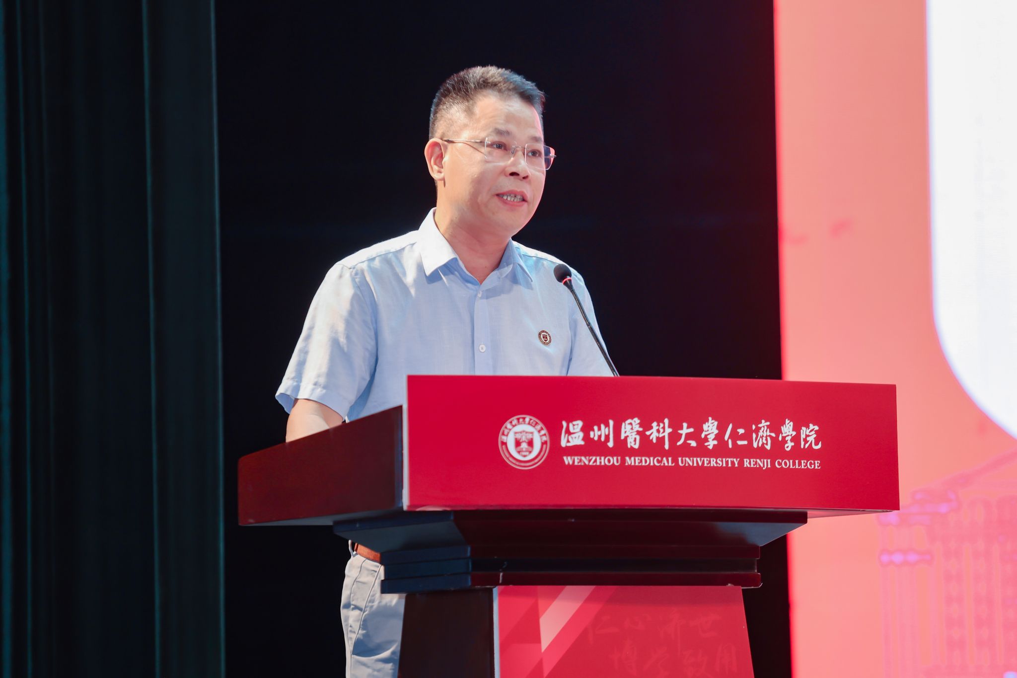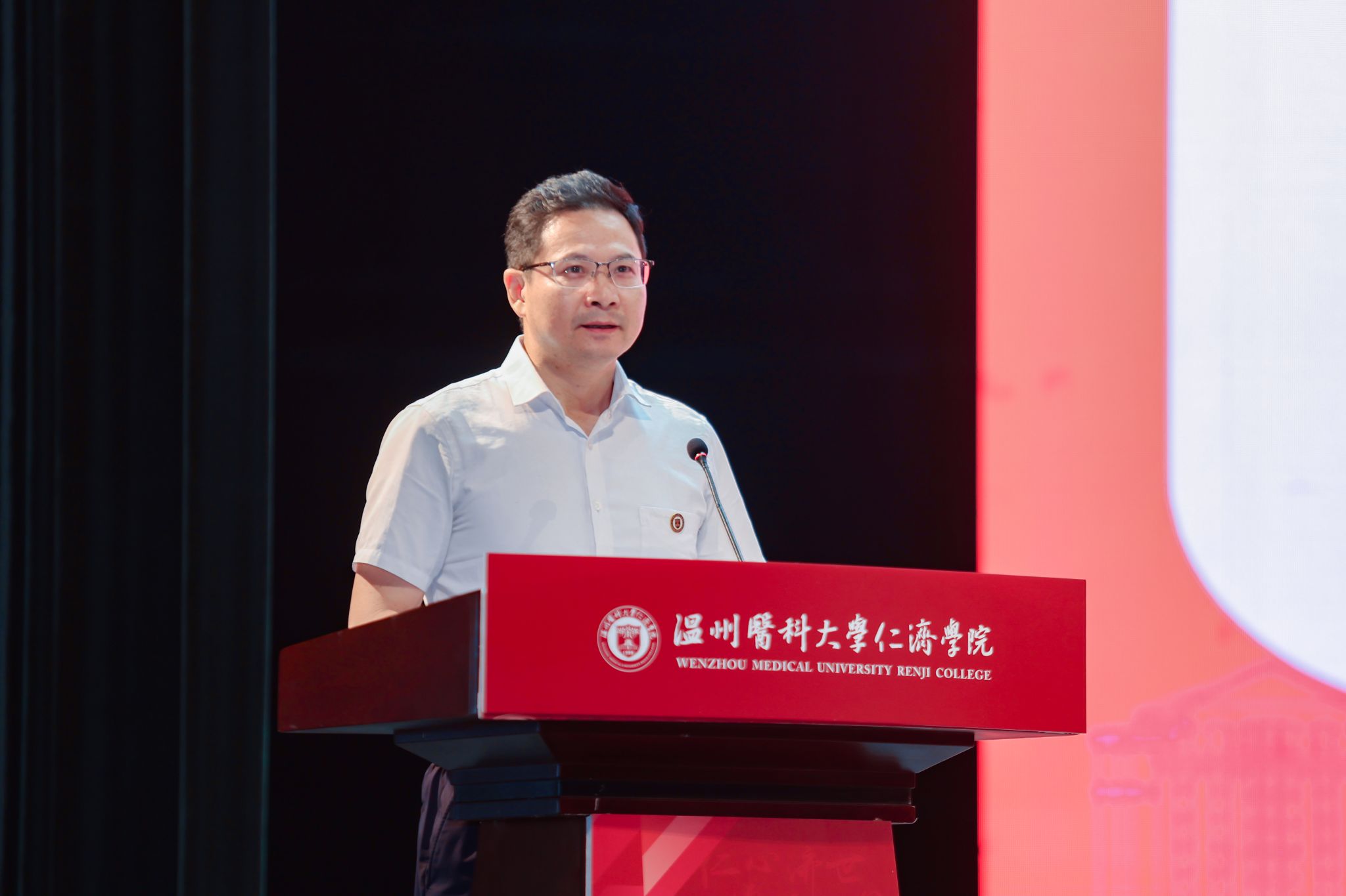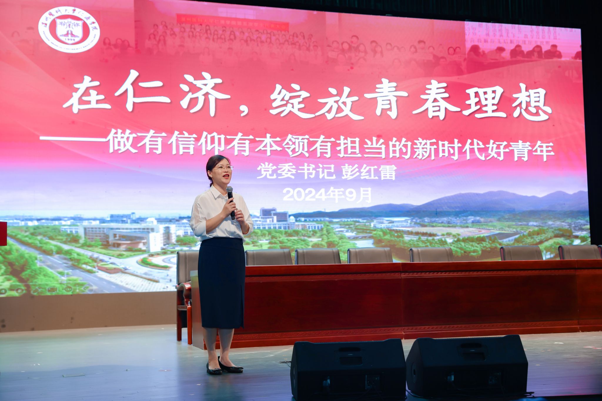 典礼结束后,黄瓜视频 党委书记彭红雷为2024级全体新生们带来开学第一课,分别从走进大学、见证仁济发展;融入大学、把握大学特点;逐梦大学、绽放青春梦想三个方面深入浅出地为初入大学校园的新生们指明方向,勉励新生们做肩上有责、心中有爱、眼中有光的新时代青年。