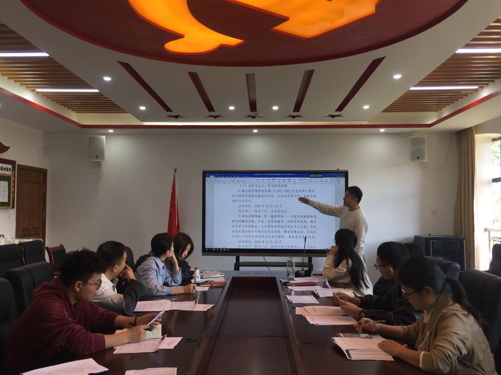 为进一步加强我院学风建设,创建优良学风,教育引导广大学生乐于学习、善于学习、学有所成,10月19日上午,学院在滨海校区举办学风建设专题研讨会暨2022-2023学年第一学期学风建设系列教育活动部署会议。院党委副书记姜旭英及学院辅导员参加会议。