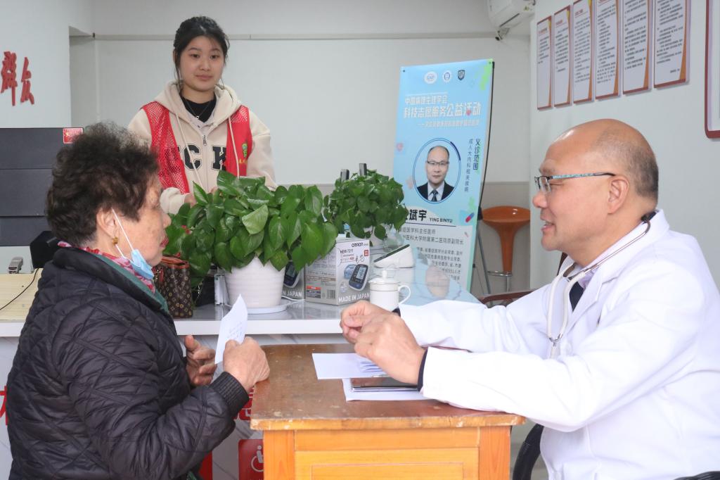 义诊活动现场,前来询问的居民早早排起了长队,为了保证活动顺利进行,学生志愿者们分为不同的小组,维持现场秩序,使活动得以顺利开展。在正式诊疗前,志愿者们先帮助居民们根据相关问题和情况进行初步的分诊,以得到更好、更快捷的诊疗。后根据需要帮助他们测量血压、血糖,对于血压、血糖偏高或偏低的居民进行重点标记,并将其数值记录交给现场的义诊专家辅助其进行后续诊疗。最后,志愿者们通过发放健康宣传手册的形式对健康保健等常识进行大力宣传,以便让居民们掌握更多的健康常识,同时根据他们的疑惑进行一一解答。