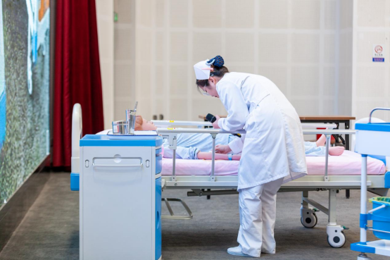 本次大赛共分为初赛、决赛、宣誓三个部分。初赛考核学生的基本护理礼仪常识,以笔试成绩筛选出十二组选手。决赛内容分为视频纠错和情景剧表演两个部分。在视频纠错环节,设定了仪容、仪表、站姿、行走、坐姿以及拾物、端治疗盘、推治疗车、推轮椅等基本护理礼仪规范,选手们凭借扎实的专业知识和充分的准备表现出色,精彩抢答赢得阵阵掌声。在情景剧表演环节,选手们思维敏捷、见招拆招,用优雅的姿态、规范的技术操作、温馨的语言自编自导自演,展示了患者入院护理礼仪、老年护理礼仪、护士查房护理礼仪、护士工作环境中接听电话礼仪等情景,传达出敬佑生命、甘于奉献的职业精神,每一组出场都精彩纷呈,现场掌声不断。