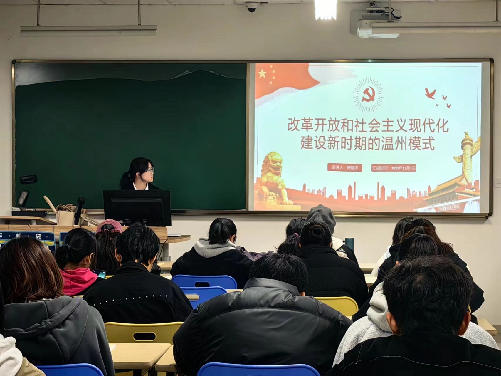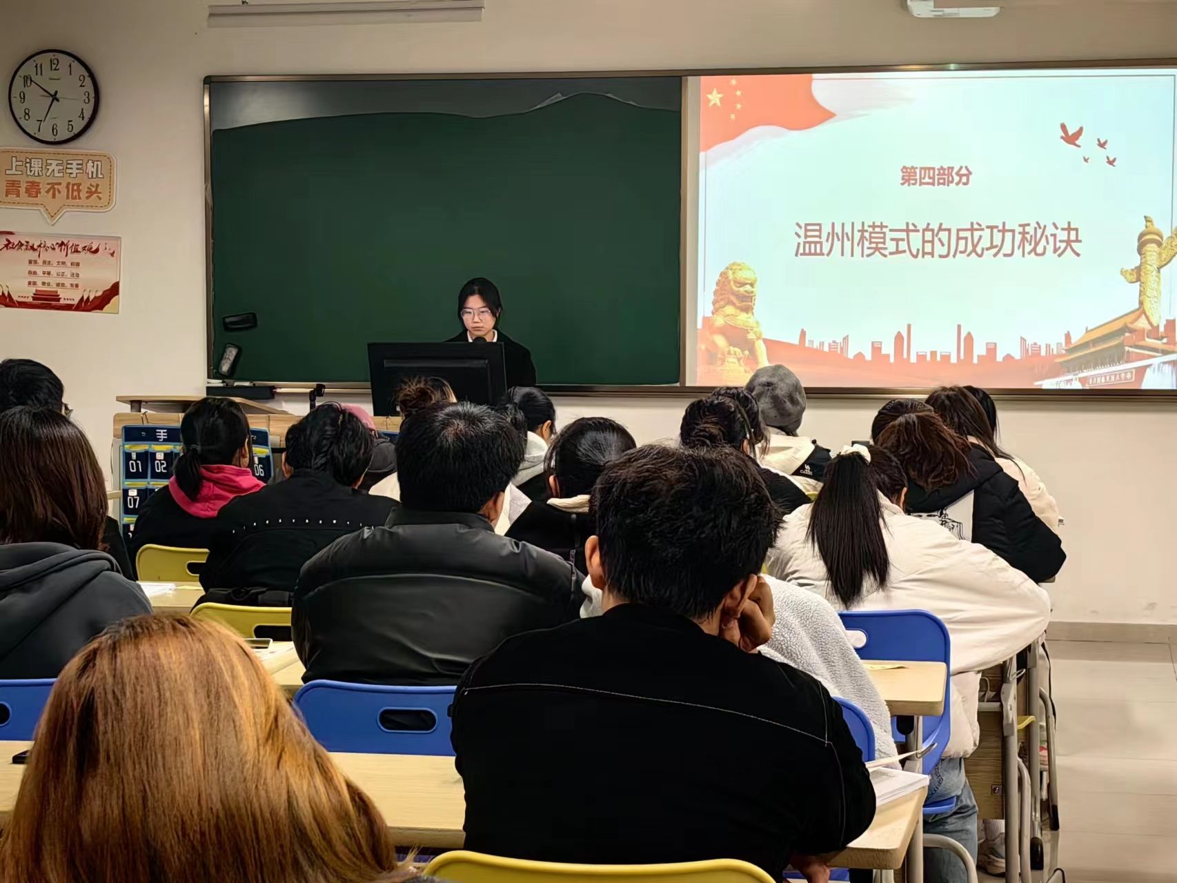 温州作为社会主义现代化建设聚焦之地,为响应改革开放和社会主义现代化建设新时期的“温州模式”,黄瓜视频 滨海校区于12月1日晚18:30在教室2119开展了本学期第三次高峰论坛活动。宣讲人傅晨洋从改革开放时期切入,从四个部分来讲述这时期的温州实践。