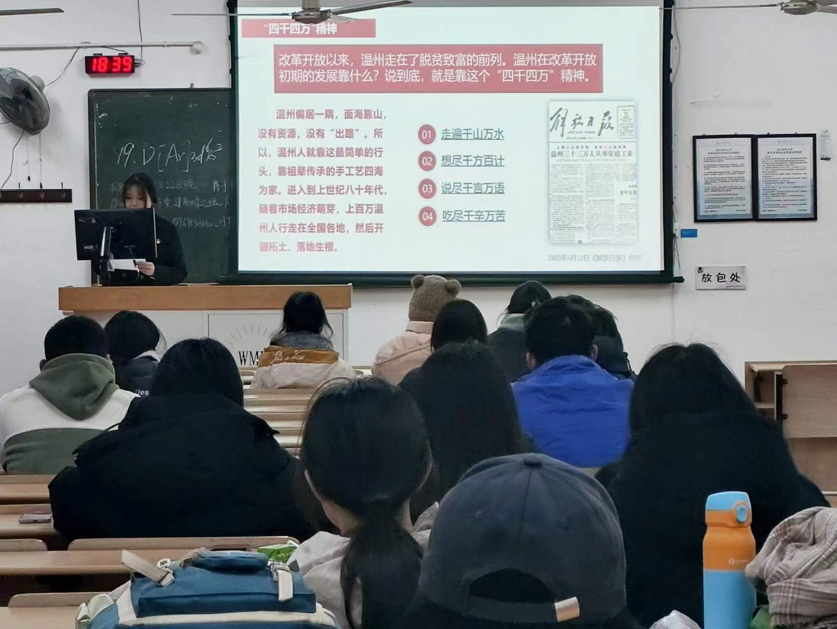 主讲人将温州之所以能够成为现代化发展的排头兵排头兵的原因对我们进行了讲解。温州虽然土地资源拮据,但凭借着“四千四万”精神,走在了脱贫致富的前列。所谓的“四千四万”精神就指的是,走遍千山万水,想尽千方百计,说尽千言万语,吃尽千辛万苦。在“四千四万”精神引领下的温州人创造了许多令人惊羡的全国第一: 有着“四千四万”精神作为引领的温州。在任何领域,温州人都有着自己的创新思路、行动纲领和行进方向。他们为中国特色社会主义市场经济体制的建立与发展创造了一个鲜活的示范样本。