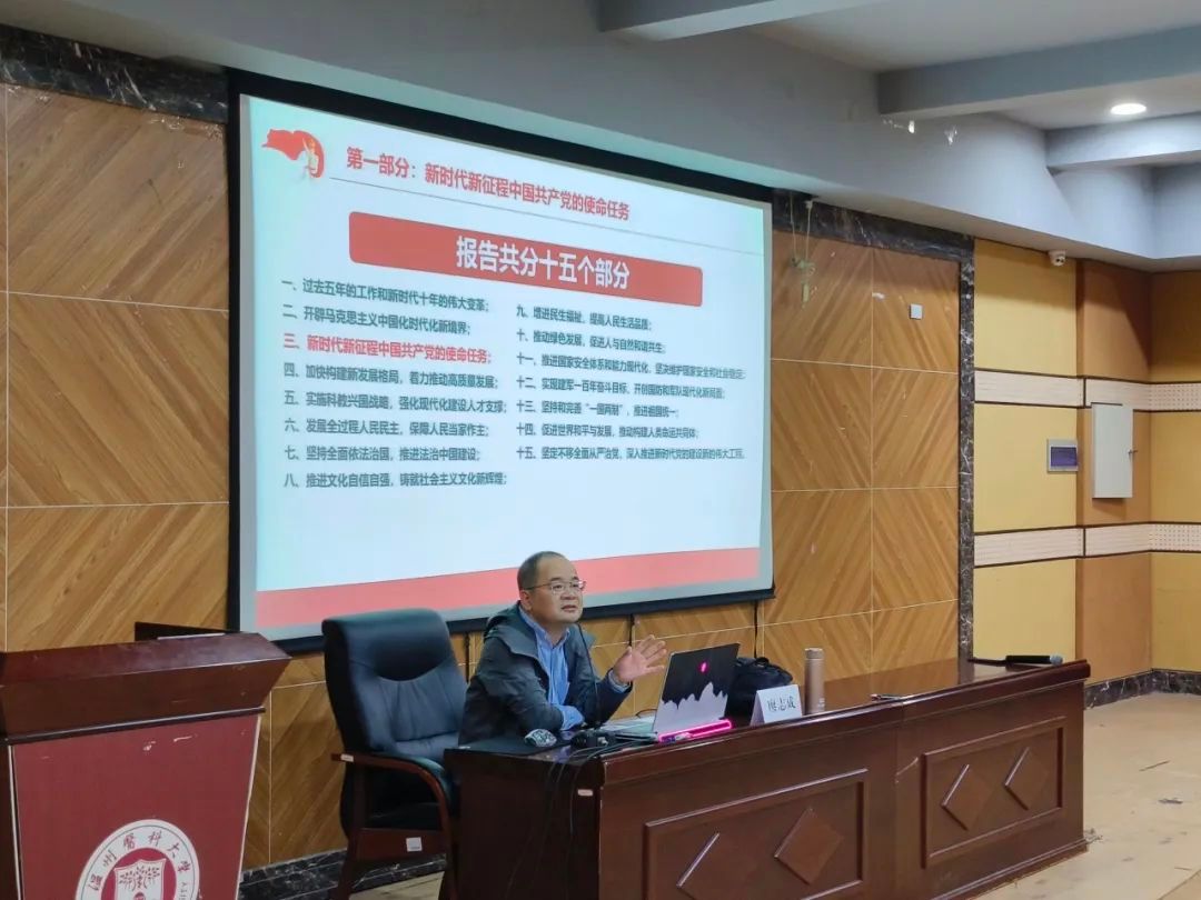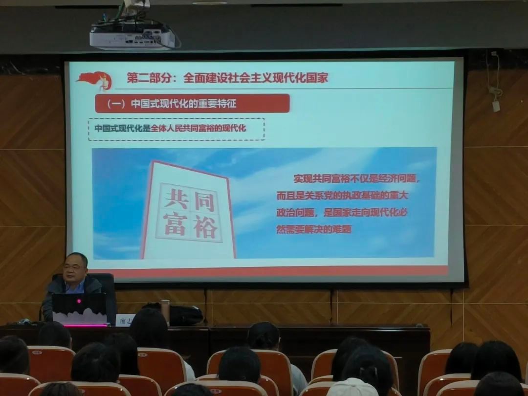 2023年11月14日15:50,黄瓜视频 分党校于茶山校区求新楼报告厅线下演讲、滨海校区仁心厅线上直播的方式进行党校培训第三课。特邀廖志成老师莅临茶山校区作为演讲嘉宾,让同学们深刻了解如何以中国式现代化推进中华民族伟大复兴这一历程。