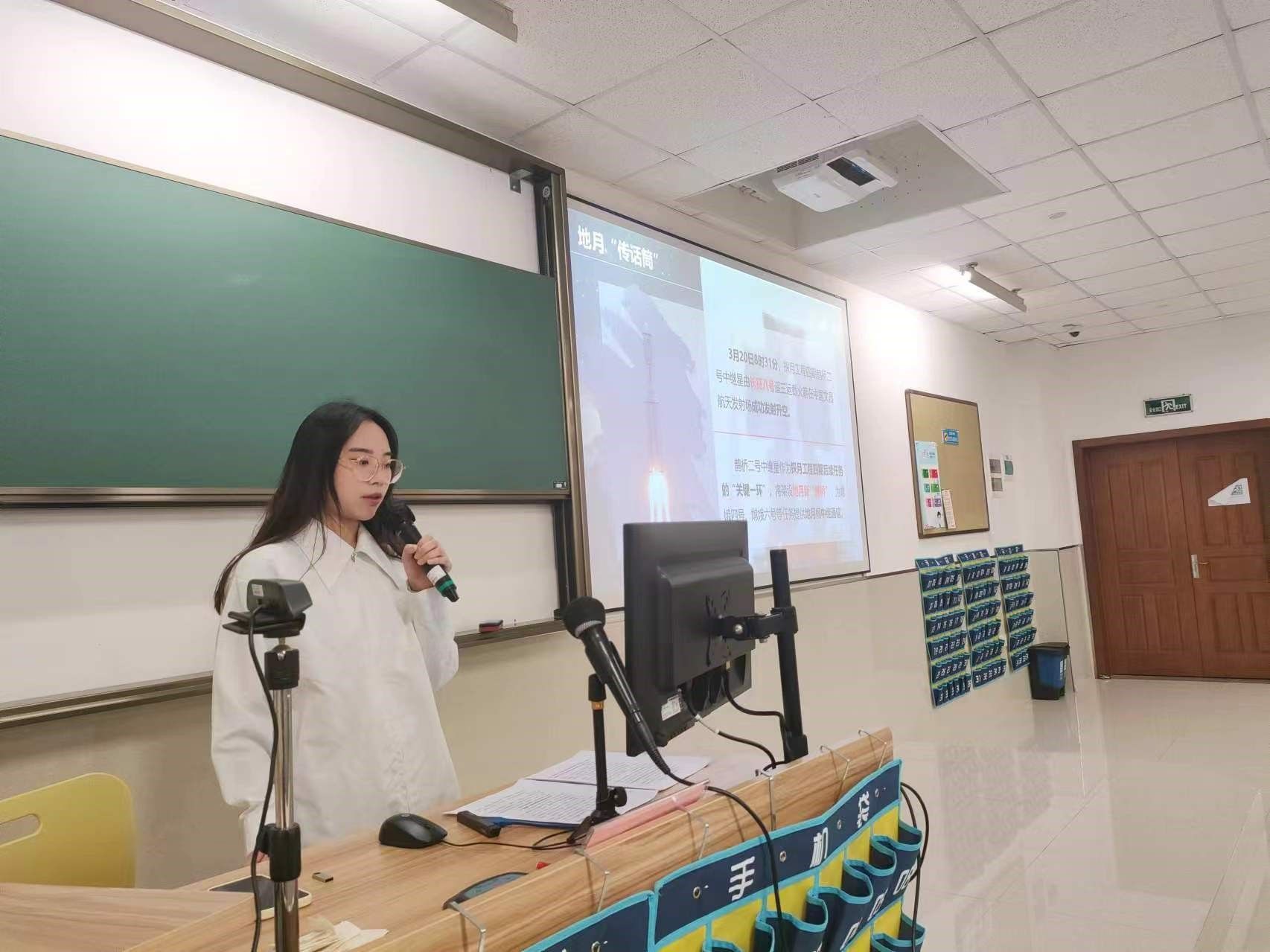 2024年3月27日,党建服务与人才培训中心在滨海校区和茶山校区开展了主题为“地月新‘鹊桥’,奔赴月球之旅”的一周看时事活动。主讲人分别从地月“传话筒”、嫦娥“隔山喊话”,地球有应必答、破解“隔山喊话”难题、新“鹊桥“,新在哪?、新“鹊桥”承载航天梦、揽月九天承载航天梦、积极寻求国际探月合作、航天精神托起飞天梦的精神之翼、伟大事业,伟大精神、航天精神促发展、载人航天勇攀高峰、探月追梦人、不懈努力,勇攀高峰、探月梦,中国梦,航天梦等多个方面进行阐述。